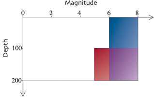 These origin subsetters combine to accept earthquakes that fall under any of the colored areas
